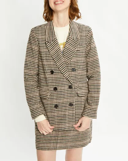 Blazer en Laine mélangée Boutonnage Check beige/marron