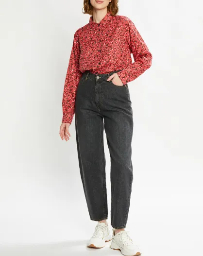 Chemise Oversize en Coton Bio mélangé imprimée rouge