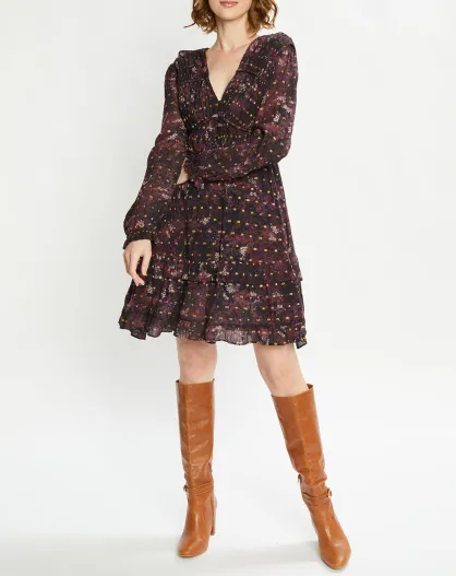 Robe Evasée Lurex col V noir/rose