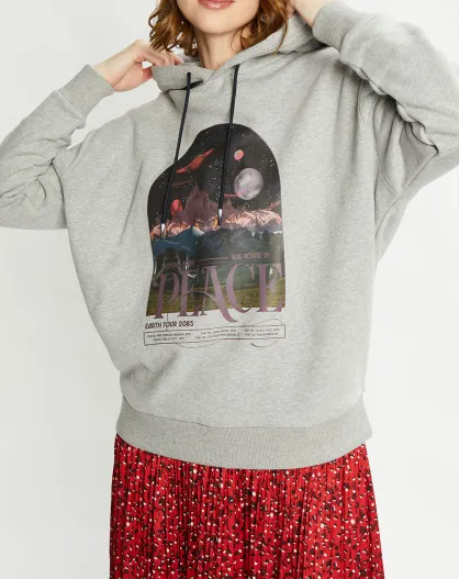 Sweat ample à capuche 100% Coton Bio imprimé gris