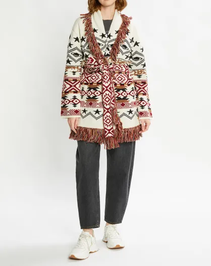 Gilet à franges en Laine mélangée Jacquard multicolore