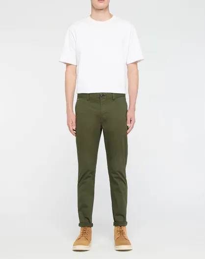 Pantalon Chino Super Slim Fit en Coton Bio mélangé Stretch kaki foncé