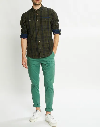 Pantalon Chino Super Slim Fit en Coton Bio mélangé Stretch vert moyen