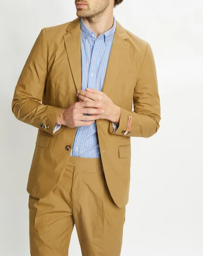 Veste Cintrée en Popeline Stretch 2 boutons camel