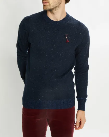 Pull en Laine mélangée col rond chiné bleu marine