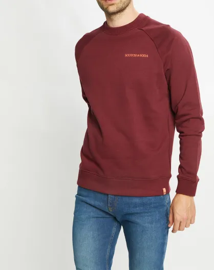 Sweat 100% Coton Bio col rond Logo Poitrine bordeaux
