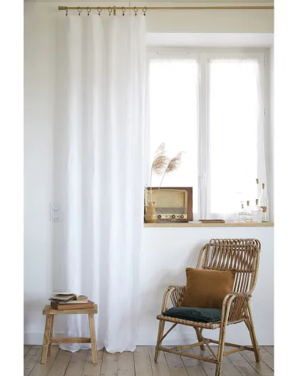 Rideau ajustable + 8 anneaux pince Lin lavé Soline Craie blanc