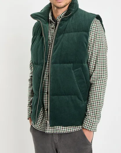 Doudoune sans manches en Velours milleraies 100% Coton Bio verte