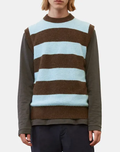 Pull sans manches en Laine & Alpaga mélangés rayé Colorblock bleu/marron