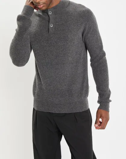 Pull en Laine & Coton à boutons gris