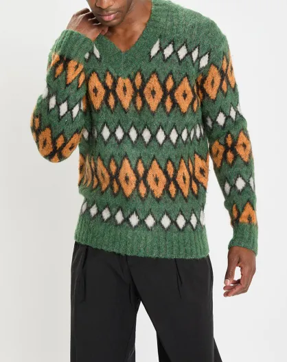 Pull en Laine, Alpaga & Mohair mélangés à motifs vert