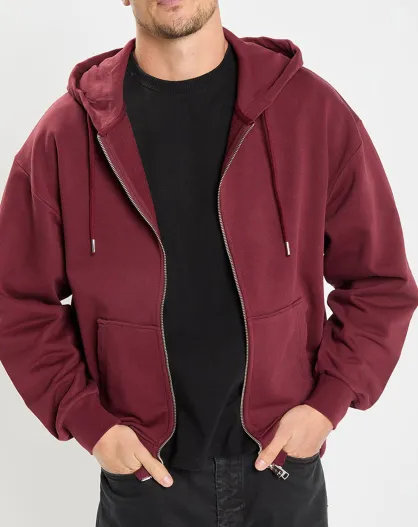 Sweat zippé à capuche 100% Coton Bio bordeaux
