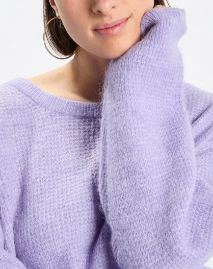 Pull en Alpaga & Laine mélangés gaufré violet clair