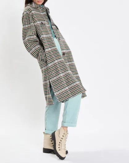 Manteau en Laine mélangée à carreaux multicolore