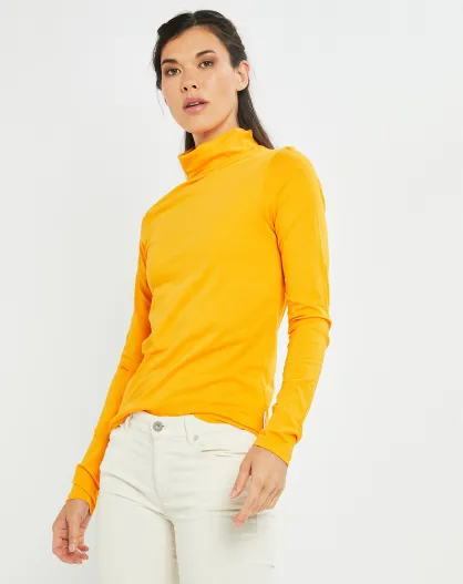 T-Shirt 100% Coton Bio col roulé jaune foncé