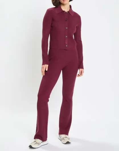 Pantalon flare côtelé rouge foncé