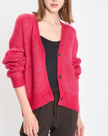 Cardigan en Laine & Alpaga mélangés framboise