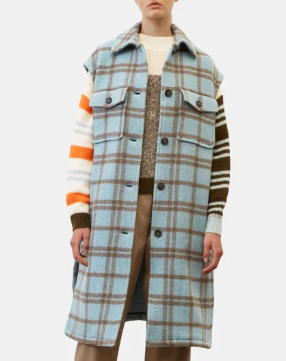 Manteau sans manches en Laine mélangée Campagne à carreaux bleu