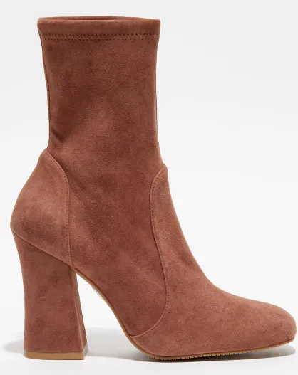Bottines en Velours de Cuir Curveblock marron clair - Talon 10 cm