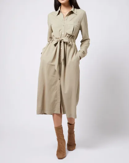 Robe-chemise dotée d'une ceinture à nouer kaki clair