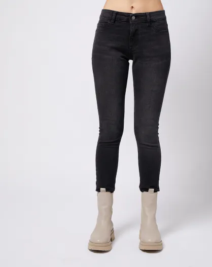 Jegging à taille mi-haute Slim Fit délavé gris foncé