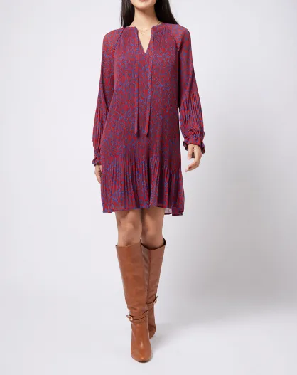 Robe blousante en voile plissé rouge/bleu