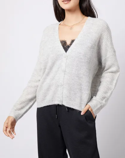 Cardigan en Maille mélangée 4 boutons gris chiné