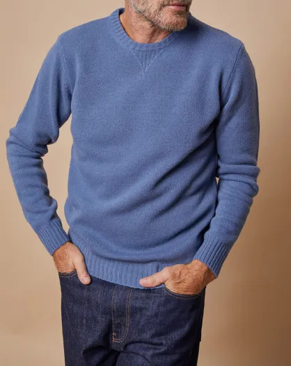 Pull en Laine & Cachemire Georges col rond bleu denim