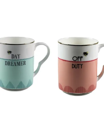 2 Mugs en Porcelaines Day Dreamer / Off Duty bleu/rose/blanc - 280 ml