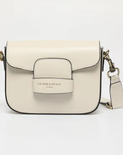 Sac bandoulière en Cuir Eliane blanc cassé - 26x16x6 cm