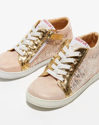 Baskets montantes Top en Cuir bi-matière rose/doré