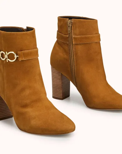 Bottines en Velours de Cuir Reina tabac - Talon 8 cm