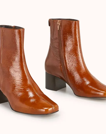 Bottines en Cuir légèrement verni Valonia marron - Talon 5 cm