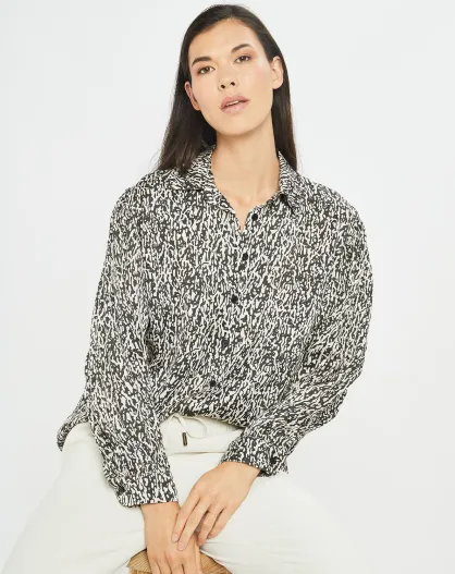 Chemise satinée Vogue imprimée noir/écru