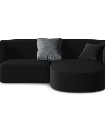 Canapé d'angle droit Modulaire Velours Chiara 3 Places noir - 184x155x74 cm