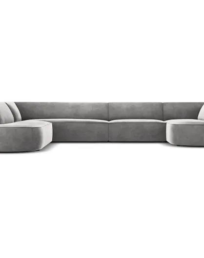 Canapé d'angle Panoramique gauche Velours Charles 7 Places gris clair - 366x273x69 cm