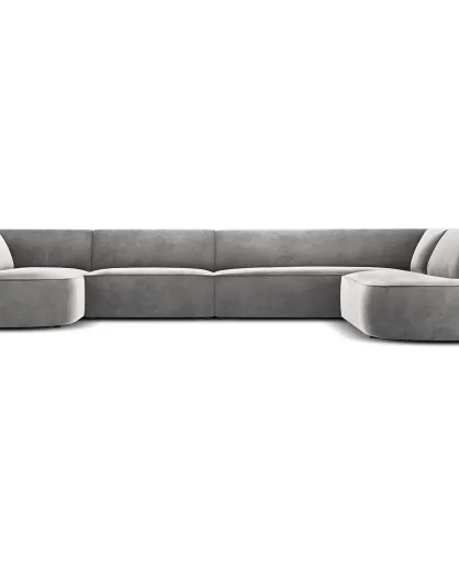 Canapé d'angle Panoramique droit Velours Charles 7 Places gris clair - 366x273x69 cm