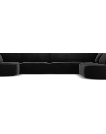 Canapé d'angle Panoramique droit Velours Charles 7 Places noir - 366x273x69 cm