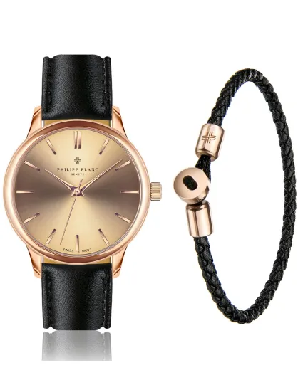 Set Montre + Bracelet en Cuir Zurich noir