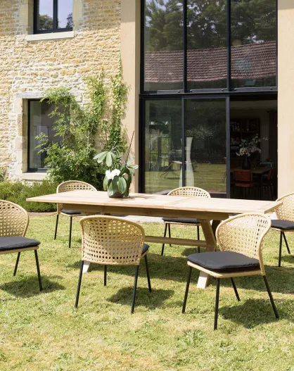 2 Chaises jardin teck rotin synthétique tressé bois - 48x59.5x84 cm