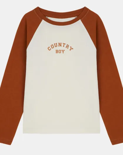 T-Shirt en Coton bio Odim raglan écru/marron