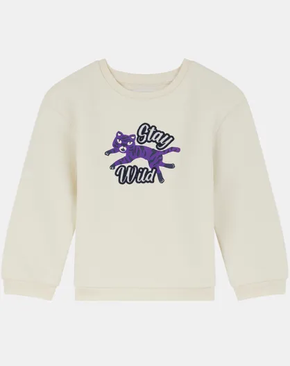 Sweat en Coton bio molletonné Adege impression écru/violet