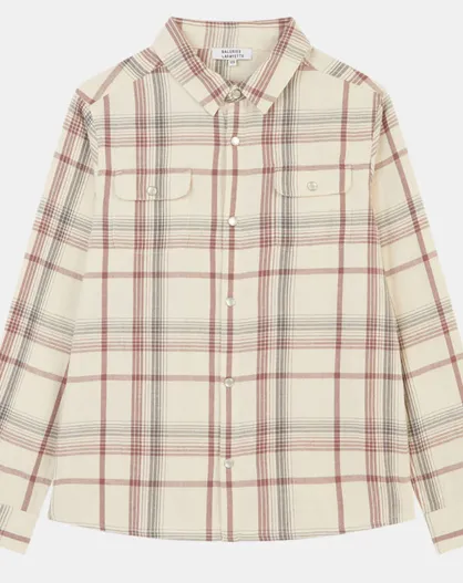 Chemise en flanelle de coton bio Sacha à carreaux écru/bleu/rouge