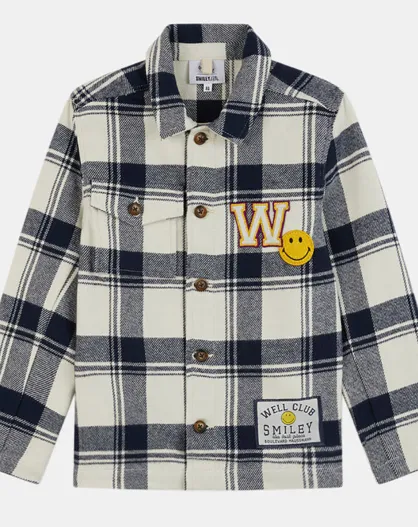 Veste surchemise en flanelle de Coton Smiley® bleu/écru