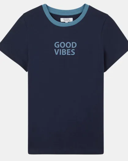 T-Shirt en Coton Cjoye impression sur la poitrine bleu marine