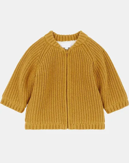 Gilet en Maille de coton et laine Anto intérieur fourré moutarde