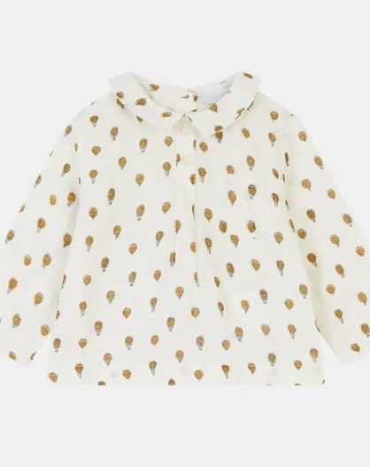 Blouse en mousseline de coton bio Abby écru/multicolore