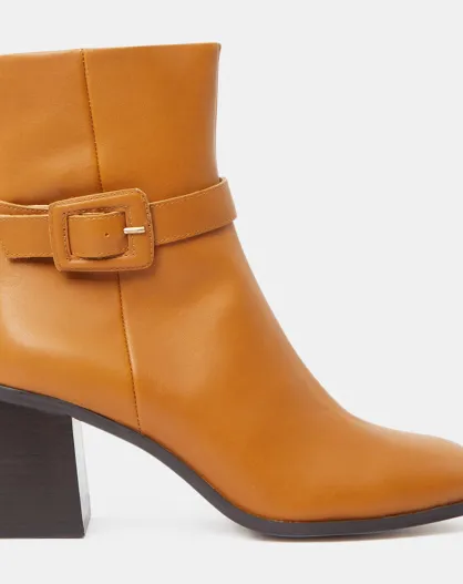 Bottines en Cuir boucle recouverte camel - Talon 6 cm