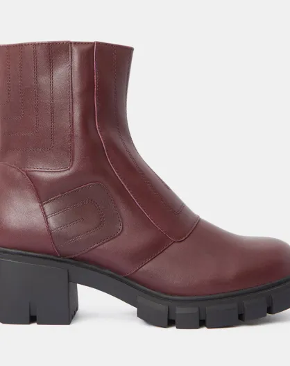 Boots en Cuir matelassées rouge bordeaux - Talon 5,5 cm