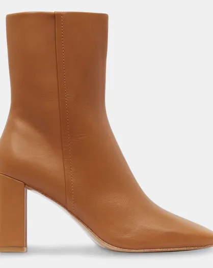 Bottines en Cuir talon bout carré camel - Talon 7 cm